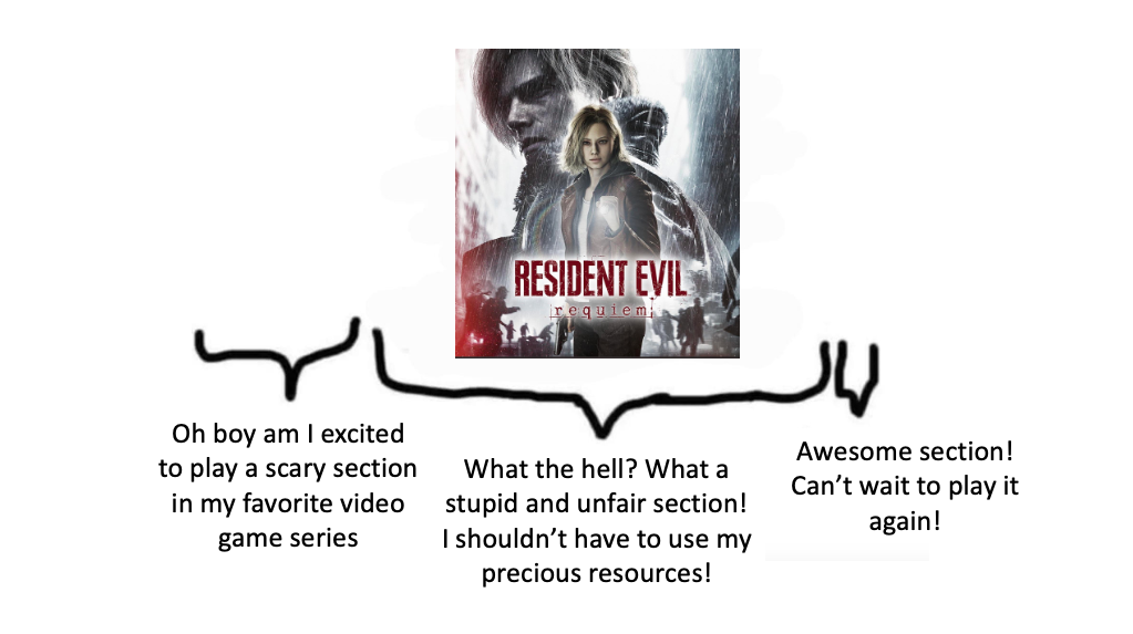As someone who started and fell in love with the Resident Evil series in the summer of 2023, I have long awaited the moment that I get to play a mainline entry on the week of release. I’ll try my best to accurately reflect my feelings while playing the games with the notes I took as I played through RE9 for the first time, however, this can end up a bit flawed on my end. As these stressful games grow in tension and difficulty, I despise them while playing in the moment. A lot of “What the hell”, “This is dumb. Can I have one calm section please?”, or “That’s bullshit! I did not!” burst out from my mouth as I take them on for the first time. After a period of reflection and completing them again, I find myself admiring these sections more and more and calmy announce “That was awesome! I love that part!”